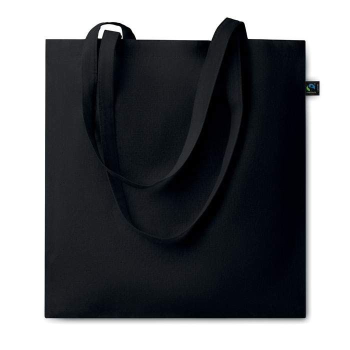 Bolsa de la compra de algodón de comercio justo teñido con asas largas. 140gr/m².