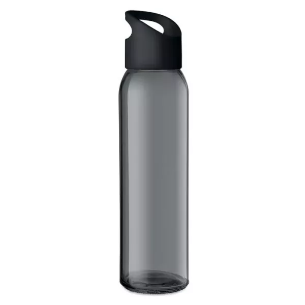Botella de cristal con tapa de PP y asa para colgar. Capacidad 470 ml. No apto para bebidas gaseosas. Anti fugas.