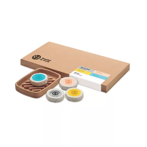 Set de belleza unisex de Branded By Earth. Incluye jabón corporal vegano de 50gr, champú, exfoliante facial, bolsa de agua micelar y una bandeja de jabón de corcho. Todas las piezas envueltas en papel. Presentado en caja de papel reciclado. Fabricado en la UE. El corcho es un material natural, debido a su naturaleza estructural y porosidad superficial, el resultado final de la impresión por artículo puede tener desviaciones.