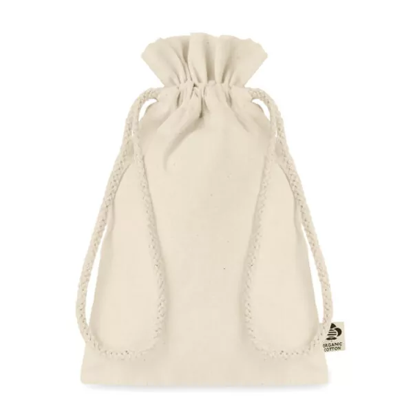 Bolsa de regalo en algodón orgánico. Tamaño aprox. 14×22 cm. 105 gr/m².