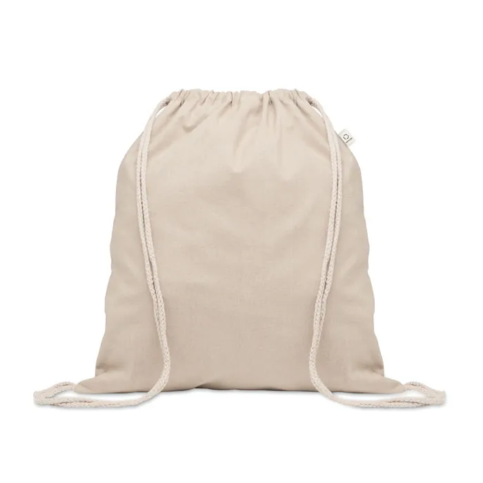 Bolsa de cuerdas de algodón reciclado pre consumo (70%) y RPET (30%). 140 gr/m².
