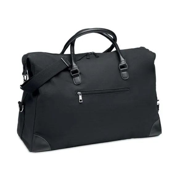 Bolsa de fin de semana en canvas de 340 gr/m² con detalles en PU reciclado. El forro es de RPET 210D. Incluye correas resistentes, ajustables y desmontables. Tamaño perfecto para el equipaje de mano.