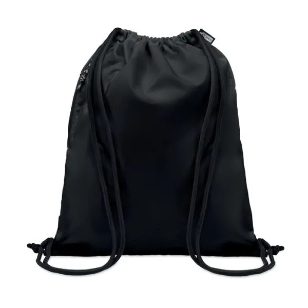 Bolsa grande de cuerdas en poliéster RPET 300D con bolsillo exterior lateral con cremallera. Cordones gruesos.