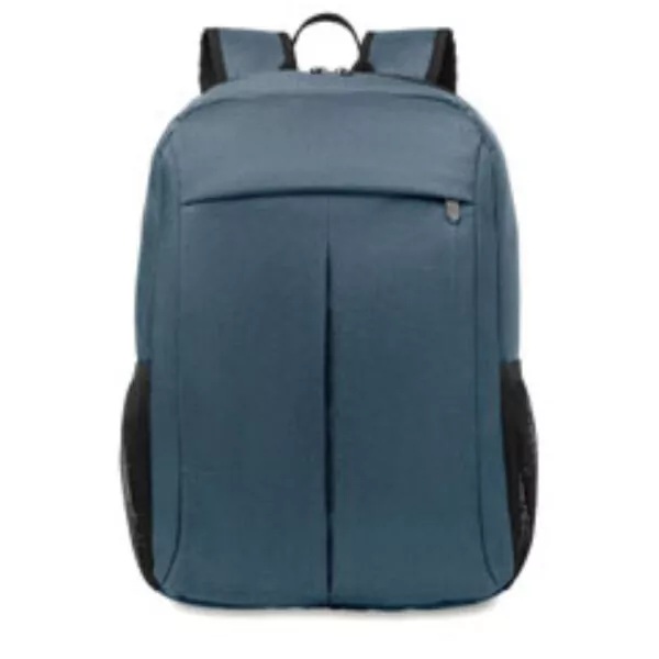 Mochila para portátil en poliéster 360. Incluye compartimento interno para ordenadores de 15» y bolsillo externo frontal con cremallera. Correas y parte trasera acolchadas. Compartimento adicional para tablets. Sujeción para trolleys.