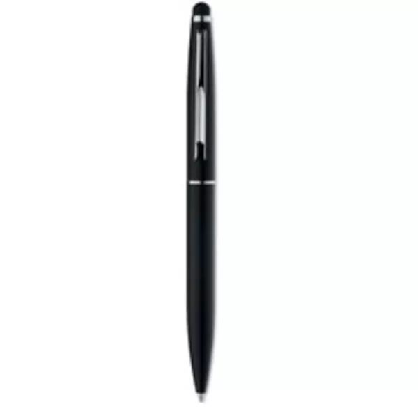 Bolígrafo giratorio de aluminio con acabado mate y puntero para pantallas táctiles. Tinta azul.