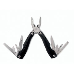 Multikit plegable de alicates y 9 herramientas presentado en funda de poliéster 600D.