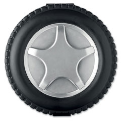 Set de 25 herramientas en forma de neumático. Incluye destornilladores de precisión, 5 adaptadores, alicates, llaves hexagonales, 10 cabezales, flexómetro, etc.