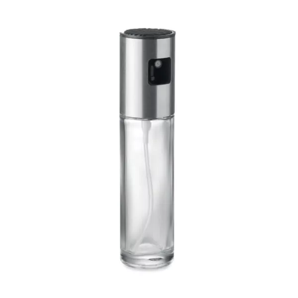 Pulverizador de aceite spray de vidrio con tapa de acero inoxidable. Capacidad: 100 ml.