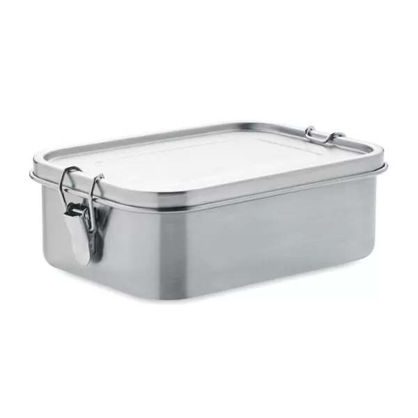 Fiambrera de acero inoxidable con hebillas laterales fuertes y seguras. Incluye separador interior. Capacidad: 1200 ml.