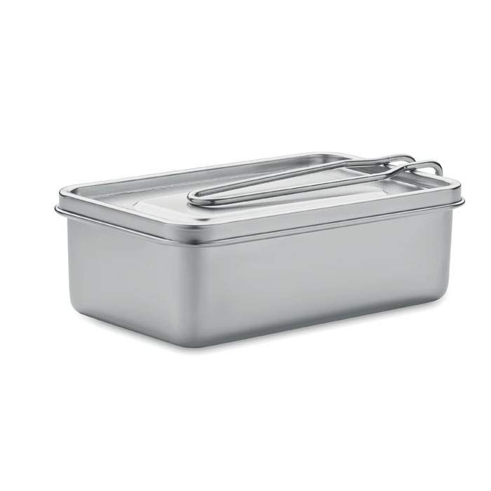 Fiambrera de acero inoxidable con asa de cierre extraíble. Capacidad: 750 ml.