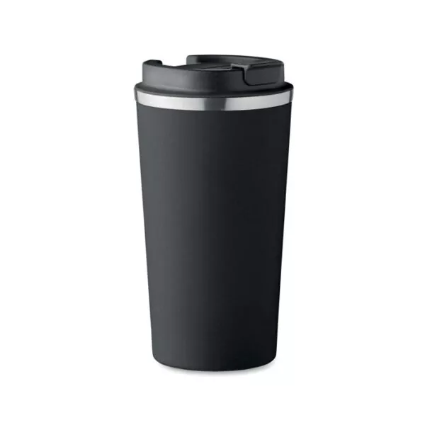 Vaso de acero inoxidable de doble pared con tapa de PP. Capacidad: 510 ml. Sin fugas.