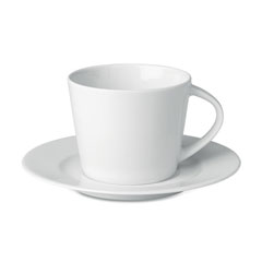 Taza de cerámica para cappuccino de 160 ml. Embalaje a granel. Marcaje en tampografia no apto para lavavajillas. Transfer cerámico es apto para lavavajillas.
