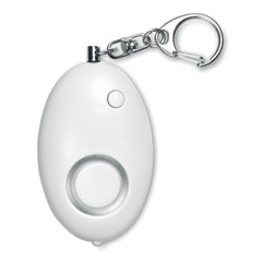 Mini alarma personal en ABS que se activa al separar el conector atado al llavero. Incorpora una luz LED blanca. 3 pilas AG13 incluidas.