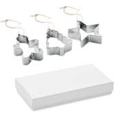 Juego de 3 moldes para galletas de acero inoxidable con cordón de yute. Cada uno se puede utilizar también como adorno para el árbol de Navidad.