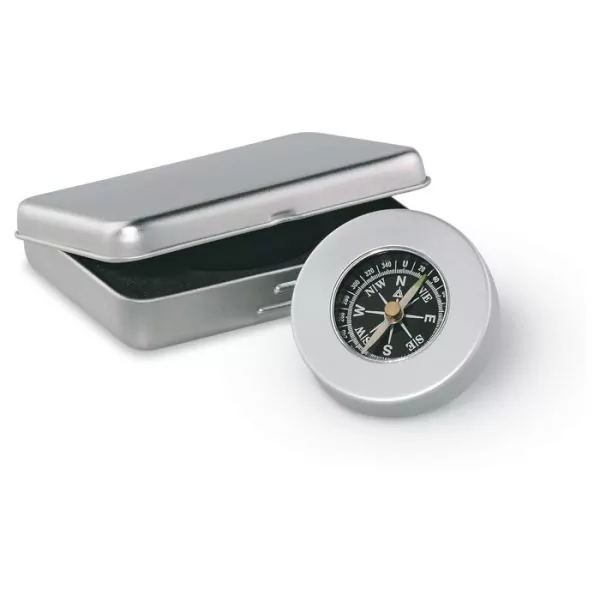 Brújula de diseño clásico realizada en aluminio. Presentado en caja de latón.