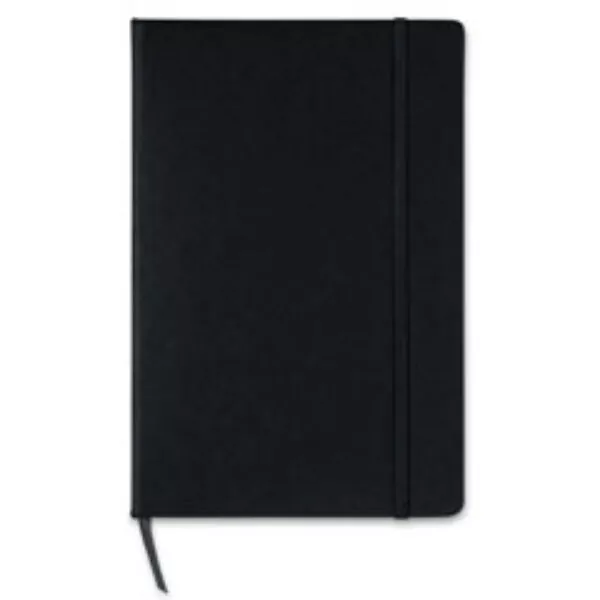 Libreta A5 con tapa rígida. 96 hojas cuadriculadas. Banda elástica y marca páginas.