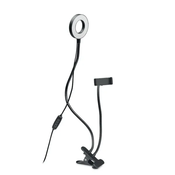 Anillo de luz LED portátil de 24 cm con soporte para teléfono y pinza. Ideal para tik-tok®, para usar para fotografía, hacer directos y postear. Luz blanca, cálida, con 3 niveles de brillo diferentes.