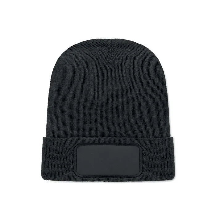 Gorro de punto unisex de suave poliéster RPET elástico con puño y parche.